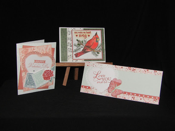 so here we go! The one on the left will include instruction in making background paper with stamps and ink . The middle cardinal card will be made using a stencil. The Slimline card on the right will be simply made and use embroidery elements.